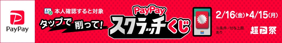 - PayPay決済の利用特典および、同時開催の他の総付キャンペーンの適用条件を満たす場合、本キャンペーンの付与分が変更になる場合があります。