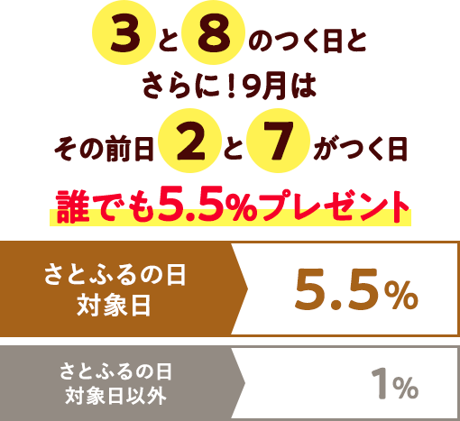 - ・お客さまのご都合によりさとふるマイポイントの付与ができなかった場合、さとふるマイポイントのお受け取りを辞退したものとみなします。